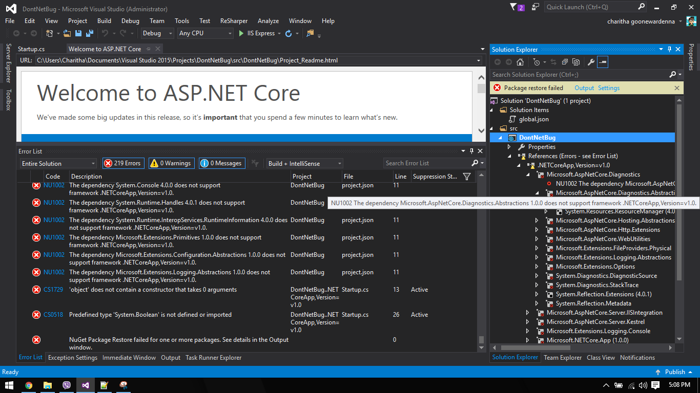 "Microsoft.AspNetCore.Diagnostics": "1.0.0",