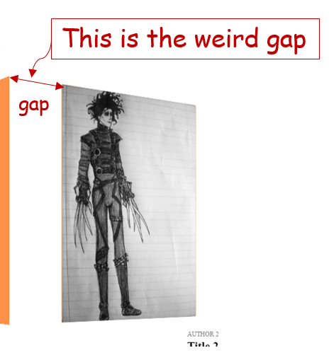 我确实让右边的书封面的div移动了,这样它就和右边完全对齐了,但是我不能让书的脊骨也随着它移动,所以这里有一个奇怪的缺口,你可以看到: