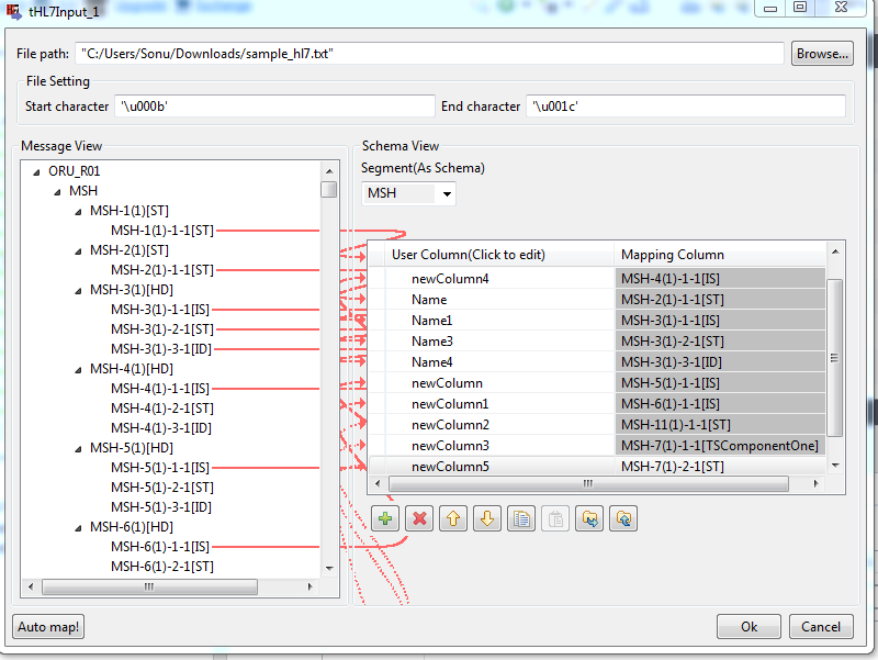 我正在尝试使用Talend从HL7文件中读取数据。我使用的组件是tHl7Input组件。