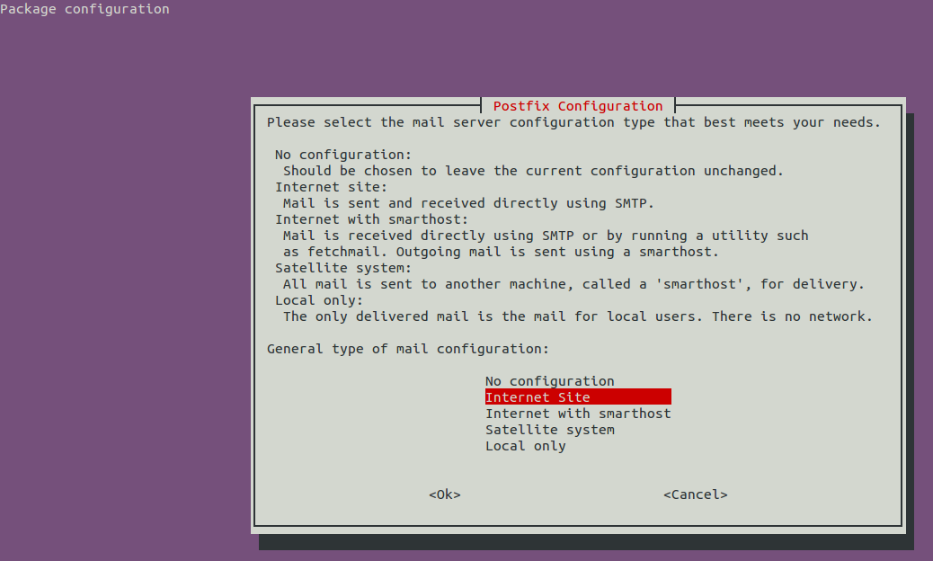 我试图通过在Ubuntu中通过Python的子进程模块自动安装tripwire。我遇到的问题是,在安装过程中,Tripwire正在提示我进行后缀邮件配置,通过安装apt-get后出现的不同配置页面(见附图)来设置site.key和local.key。