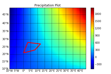 我读过这个问题-- Overlay shape file on matplotlib和我不确定它是否适用于我,但是我有一个我的国家的shapefile,我想将GRIB文件中的降水数据覆盖到那个shapefile中。这是使用pygrib和matplotlib。我对使用Basemap.coastlines()和Basemap.countries()不感兴趣,因为这在shapefile中是可用的。我想用我自己的档案覆盖它。我该怎么做?