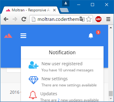我最近买了莫特兰,这很好,但有一个很大的缺点:通知菜单消失在移动设备上,这对我来说不合适。因此,我了解到,可以删除li notification元素的隐藏-xs类。这将把<li class="dropdown hidden-xs open">转换为<li class="dropdown open">,它工作得很好。