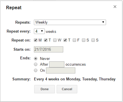 <p class="form-control-static"><b>Every {{recurrence_pattern}} weeks, until