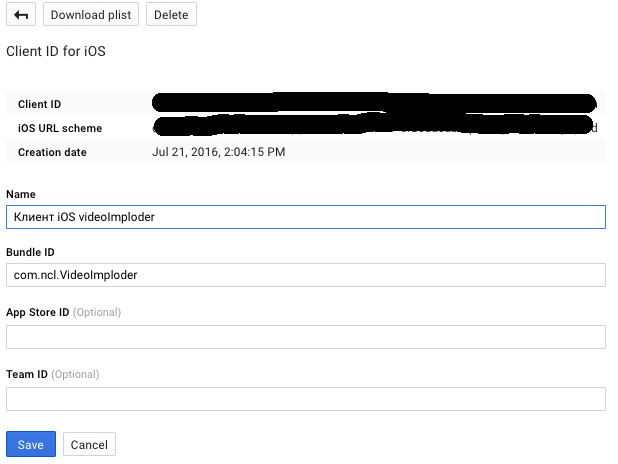 其中,我在中为iOS (没有包id)和OAuth 2.0标识符生成API密钥: