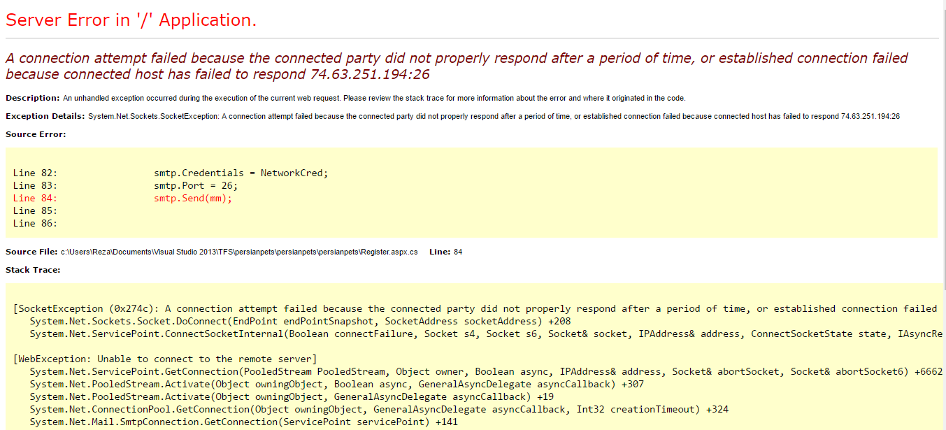 }但我错了"A connection attempt failed because the connected party did not properly respond after a period of time, or established connection failed because connected host has failed to respond 74.63.251.194:26“