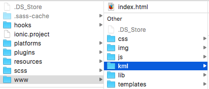 </div>我的本地KML位于我的Ionic应用程序的kml目录中的www文件夹中。