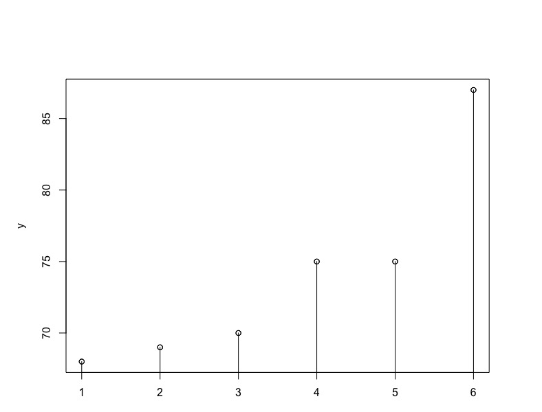 y <- c(68, 69, 70, 75, 75, 87)