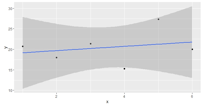 data<-data.frame(y=c(20.7, 18, 21.4, 15.3, 27.3, 20),x=c(1:6))