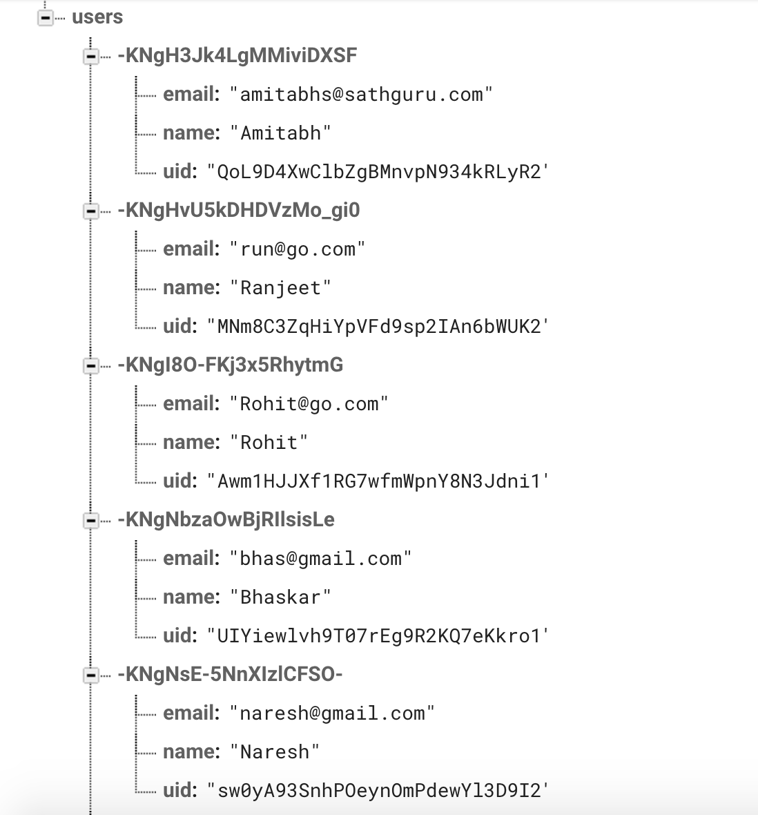 我只想检索有名字的记录:“amitabh”带有电子邮件和uid,