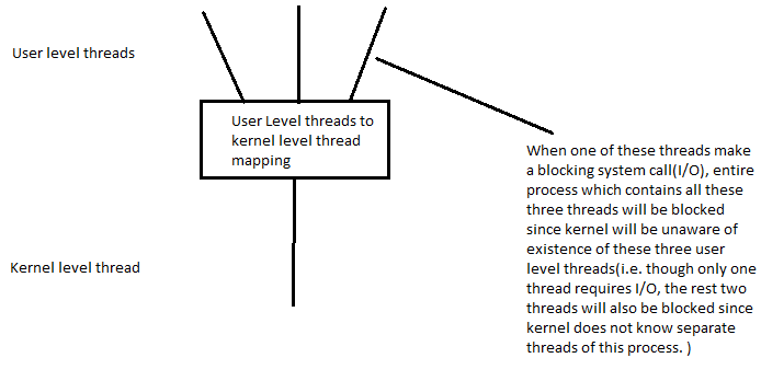 与“内核线程”(下面)相比,“用户线程”的神秘优势在于它们更有效率。这就是你引用的文章所指的。“如果线程进行阻塞系统调用,整个进程将被阻塞”的语句仅在某些unix系统上是正确的。