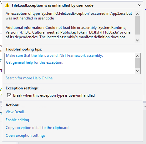 在没有引用我自己的.dll的情况下,一切都正常,并且没有出现错误。