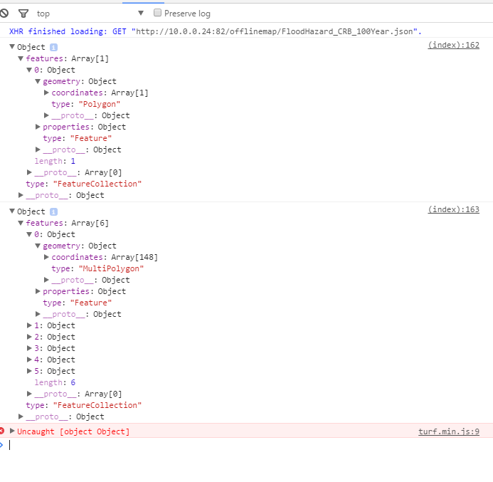 首先要注意的是,Turf需要完整的GeoJSON 对象作为参数,而不仅仅是它们的geometry。