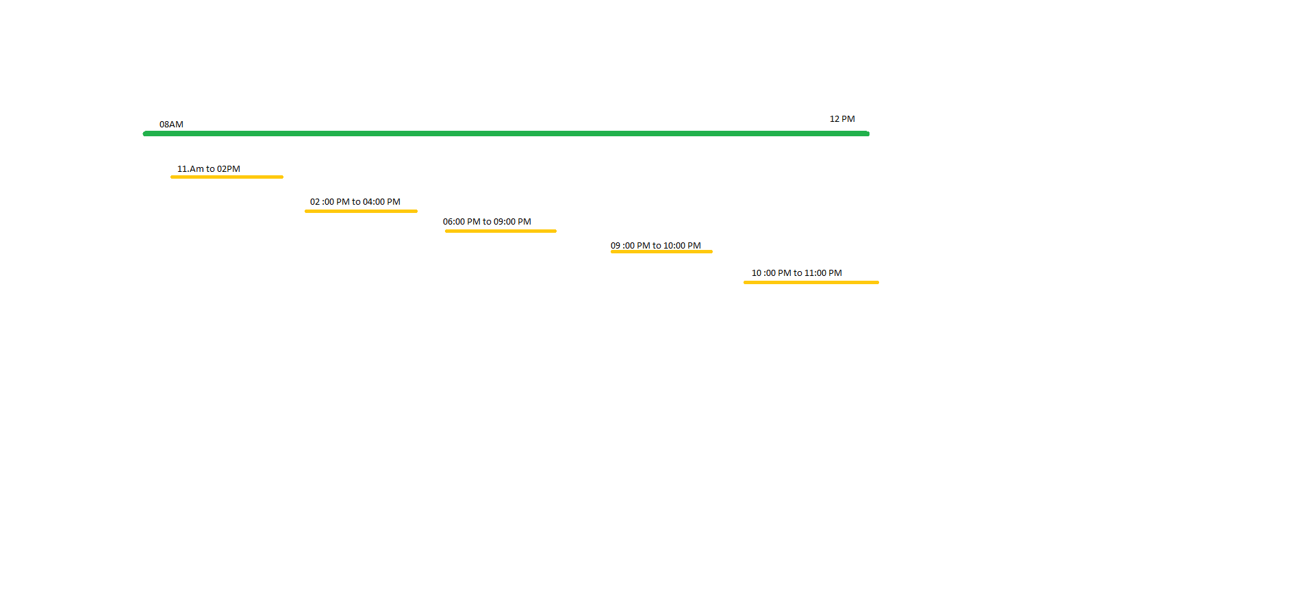 我正在寻找像甘特图一样的javascript图表,但它不能有y轴。数据只给出x轴的各自。这里我附上了图表的样本设计。使用javascript在所有可用的图表中搜索,但我找不到解决方案。