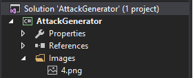 PhotoSelected = new BitmapImage(new Uri(@"pack://application:,,,/Images/4.png"));将/ image /4.png替换为从解决方案级别开始的映像路径。例如,这就是我的解决方案树达到这一点的样子: