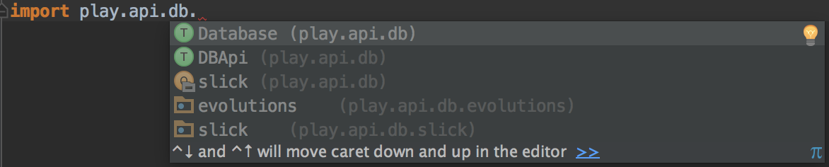 对于那些不依赖Slick但有相同问题的人。如果您已经向jdbc和DB驱动程序(例如Postgresql)添加了依赖项,并且仍然存在问题,则需要通过sbt重新编制所有依赖项的索引。在我的例子中,关闭IntelliJ思想和随后重新打开项目会导致依赖关系、重新索引和问题消失。