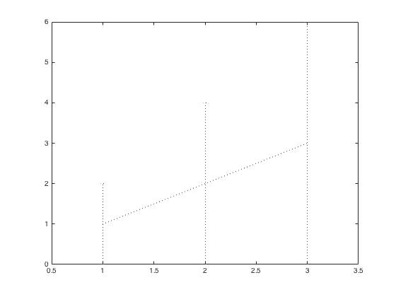 d = errorbar(1:3, 1:3, 1:3, 'LineStyle', ':');