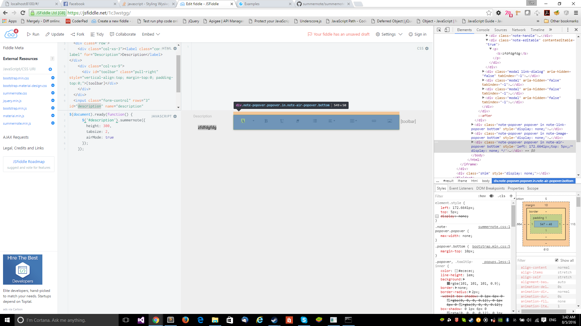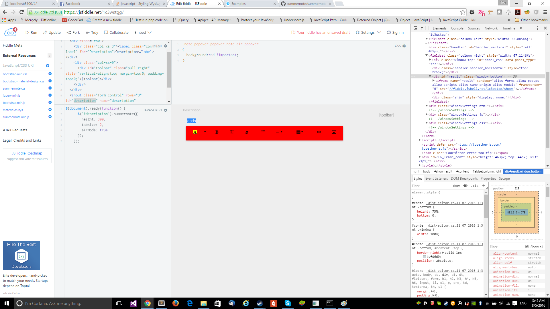 我有一个HTML页面。在这一页中,我试图添加一个WYSIWYG编辑器。我决定使用这一个。我让它在我的应用程序中工作。然而,我似乎无法按照我想要的方式来设计它。我相信问题是因为我在使用这个主题。我非常希望能够将toolbar floating放在控件的上方,文本框标签的右边。同时,我想保持纸张的外观而不是笨重的盒子。
