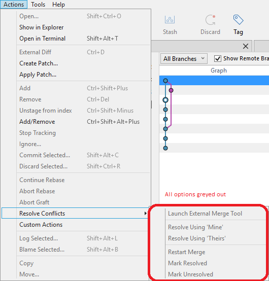 操作/解决冲突/启动外部合并工具菜单项没有(它是灰色的)