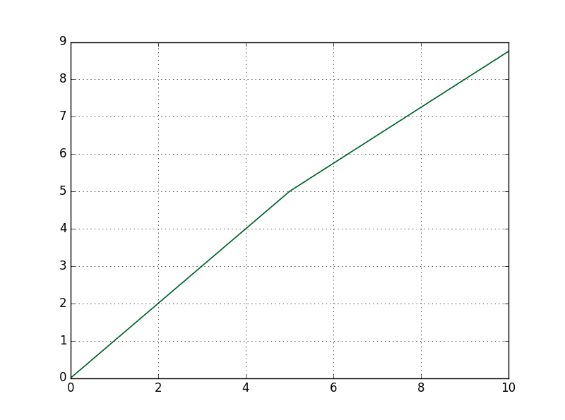我正在用下面的代码绘制两个斜坡的线,如picture.The斜率应该在一定的极限limit=5后应该下降。我正在用矢量化方法设置坡度values.Is,还有其他方法来设置斜坡values.Could,有人在这方面帮我吗?