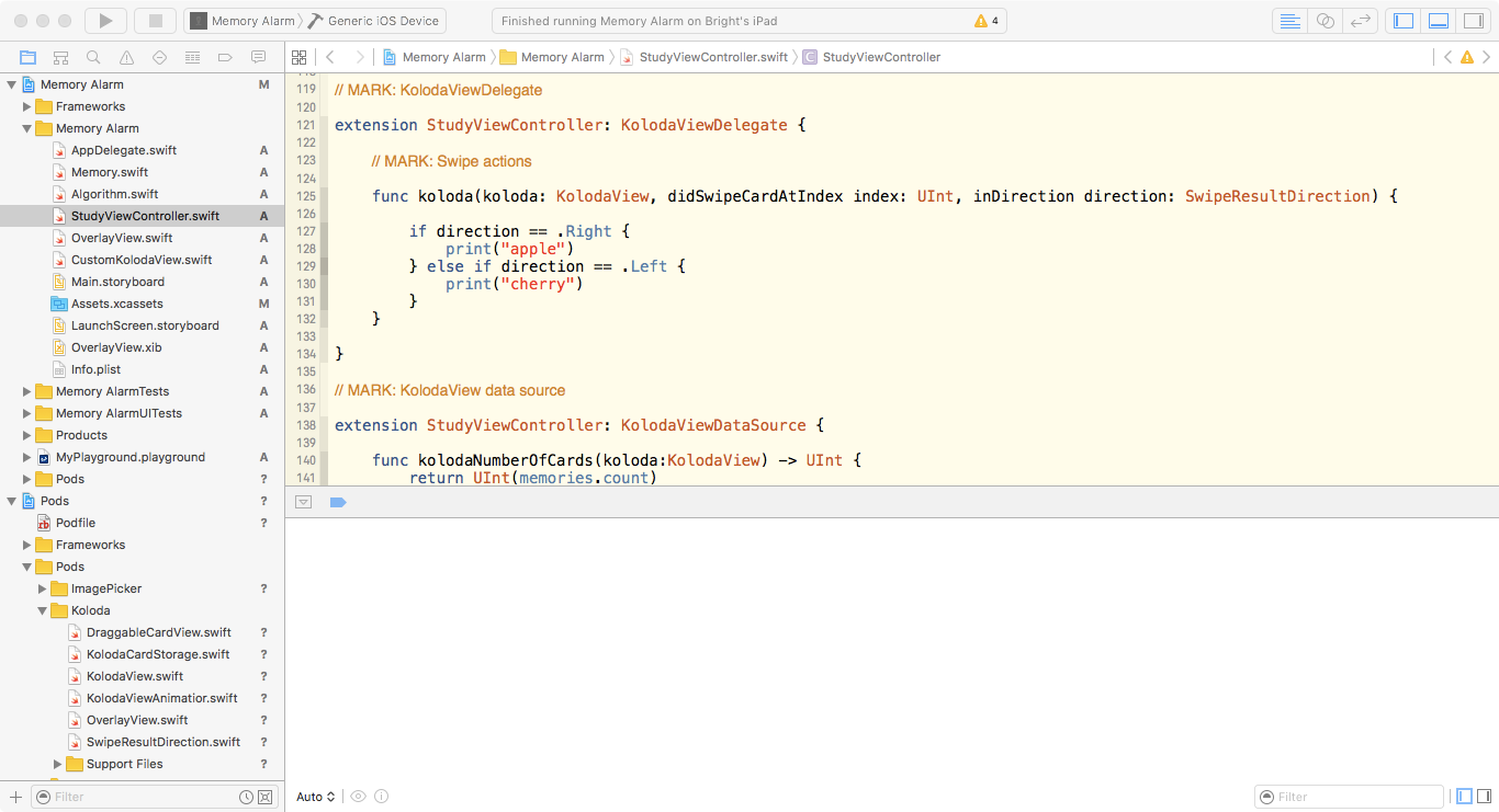 func koloda(koloda: KolodaView, didSwipeCardAtIndex index: UInt, inDirection direction: SwipeResultDirection) {
