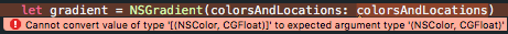 let gradient = NSGradient(colorsAndLocations: cAndL[0], cAndL[1])不幸的是,Swift并没有提供一种为各种函数提供数组的方法。