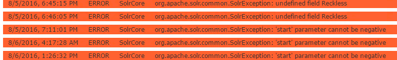 undefined field: "Reckless"通知在solr架构中未定义所讨论的字段。尝试分析系统正在接受的查询和系统发送这些查询。