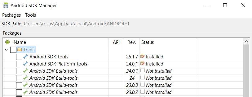 您必须打开并检查您正在使用的工具的哪个版本。如果使用Visual,甚至可以使用Android工具栏上的一个按钮( Android)从IDE中打开它。一旦打开,您就可以看到安装了哪些版本的Android构建工具,以及它们是否与您正在使用的库所需的版本相匹配。