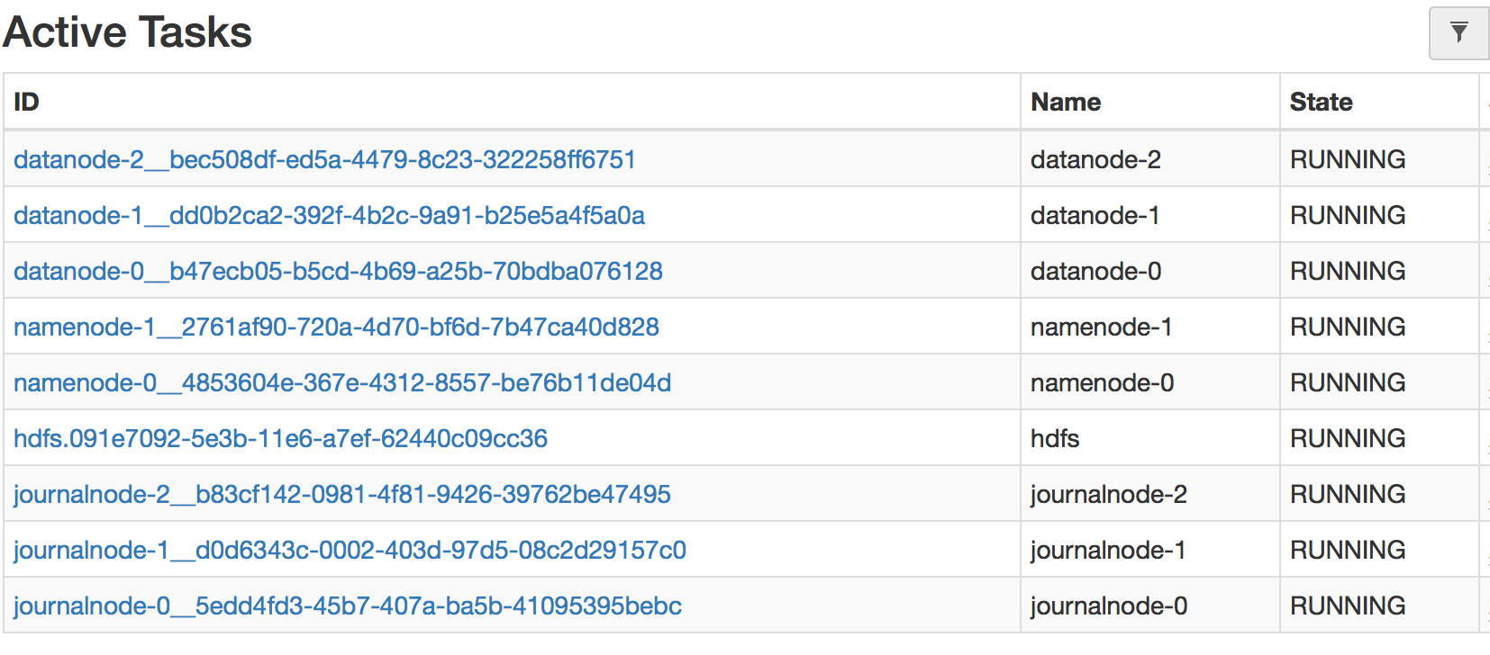 根据DC/OS网络用户界面和马拉松的说法,HDFS服务显然是健康的: