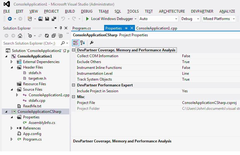 我下载并安装了DevPartner v110300的正式试用版。根据项目属性中的文档(与安装相关的文档),属性“从.NET收集”应该存在。但是我已经为本地C++、托管C++和C#项目“收集了COM信息”。我使用2012。理由是什么呢?如何解决?
