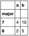 dtype: int64df.groupby(df.version.apply(pd.Series).major)[['a', 'b']].sum()