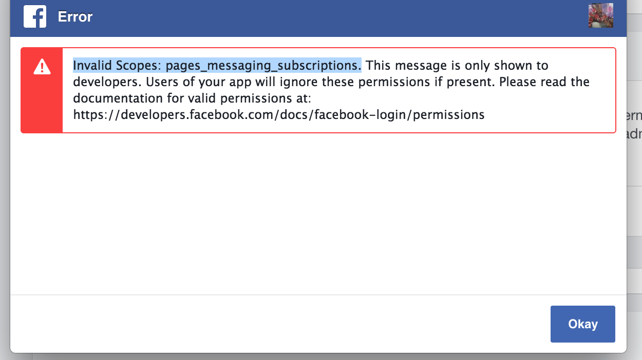 我正在尝试将一个Facebook Messenger应用程序连接到我的一个页面上。我以前把Facebook的Messenger应用程序连接到页面上。