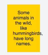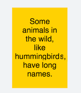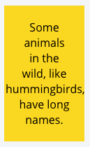<p>Some animals in the wild, like hummingbirdsss, have long names.</p>