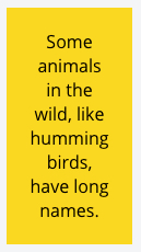 <p>Some animals in the wild, like hummingbirds, have long names.</p>
