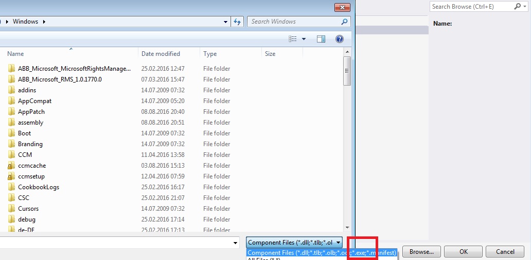 这是用于浏览引用的对话框。如您所见,您可以选择exe文件。