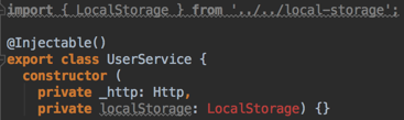 @Inject(LocalStorage) private localStorage) {} // <- this line is new