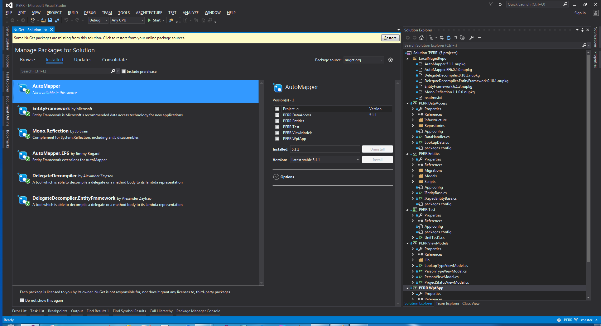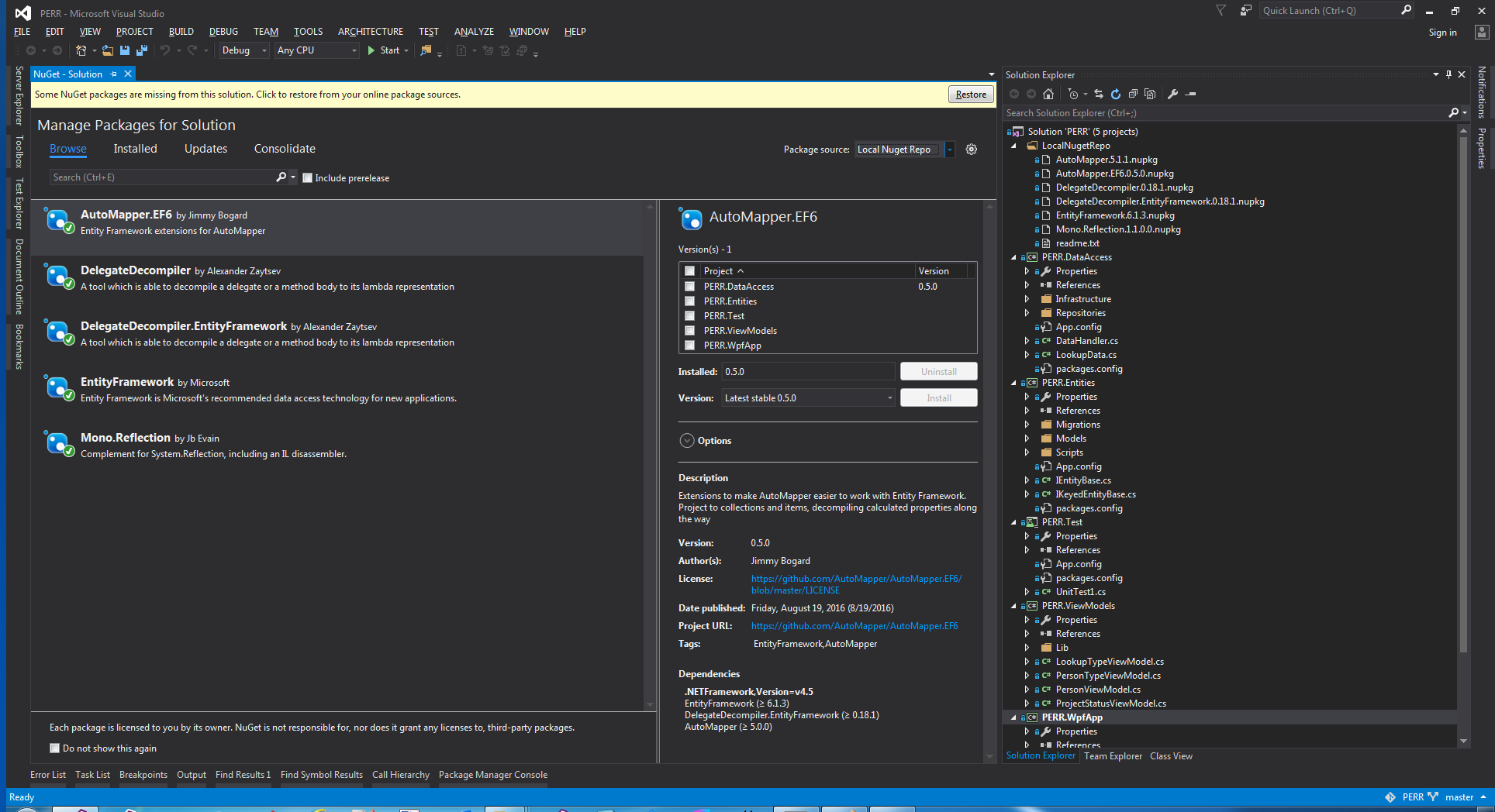 为此解决方案安装的Nuget包