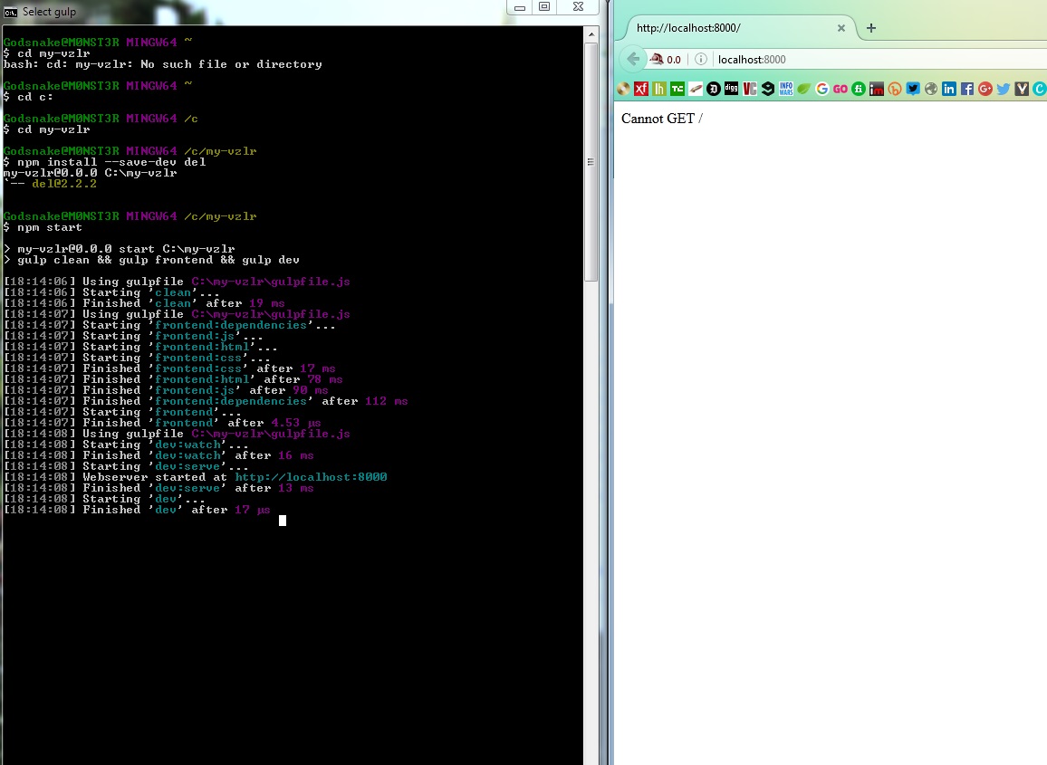 > "start": "gulp clean && gulp frontend && gulp dev",