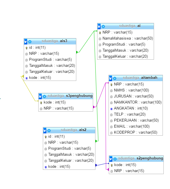 我希望将Jurusan从表aitambah显示到表ais3,并将NamaMahasiswa从表aiE 210显示到E 111通道3E 212。我制作了s3penghubung表,以便表aitambah可以与ais3相关。我能展示它们。但是,当我尝试在Jurusan字段中键入"BIO“时,搜索无法正常工作。这是刷新页面。显示的行没有任何更改。那么,我该怎么做才能解决这个问题?