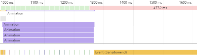 transitionend被称为太早了。这使得最后一个动画帧(477.2ms)太长,而(最后一个框架)在transitionend事件中没有呈现为。