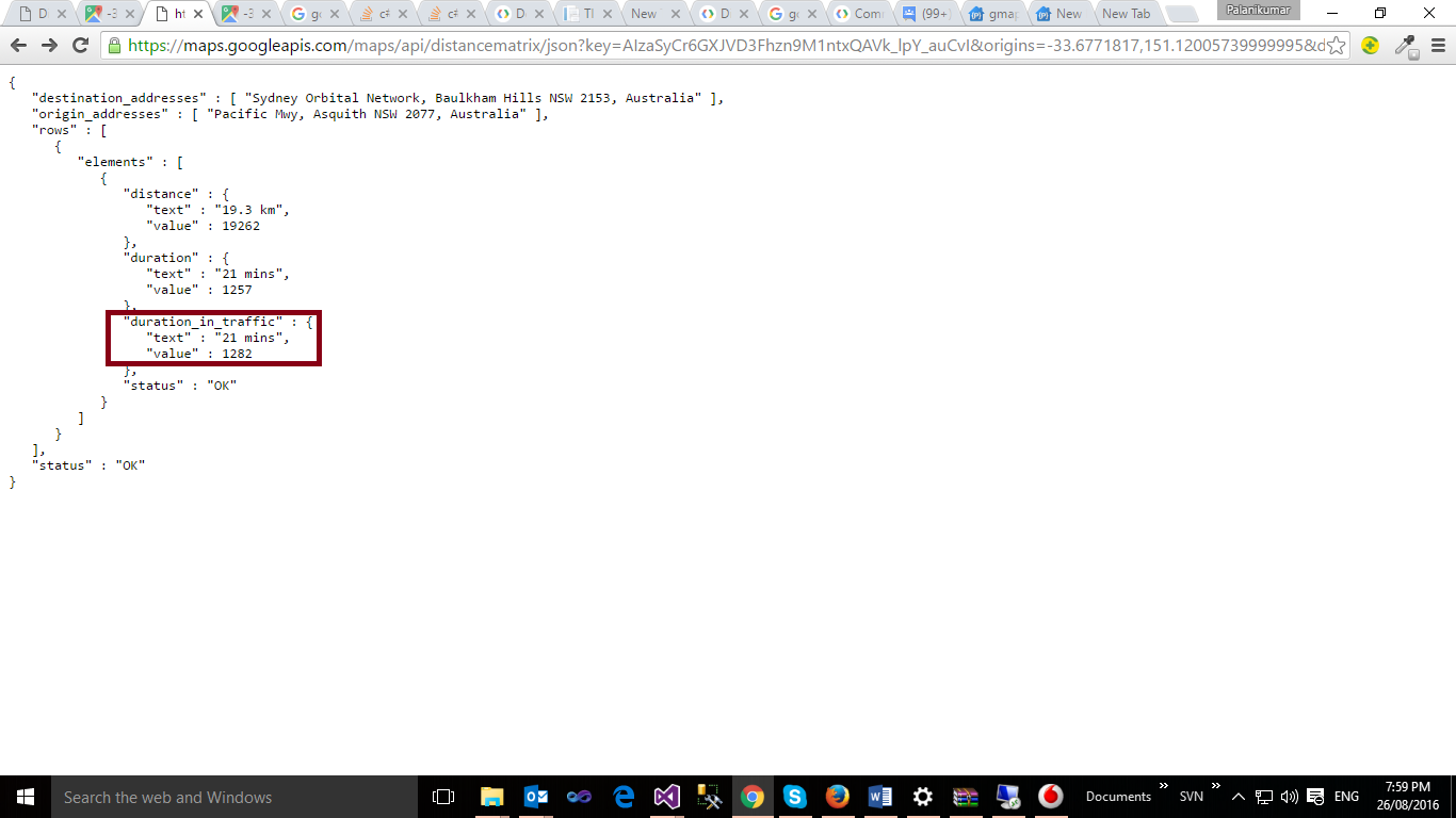 destinations=-33.7704818,150.98828609999998&travelMode=DRIVING& key=& https://maps.googleapis.com/maps/api/distancematrix/json? =-33.6771817 151.12005739999995& departure_time=Current UTC时间