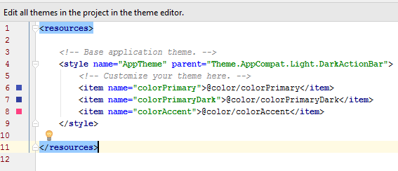 点击它将带我们到styles.xml。默认情况下,您将看到以下内容: