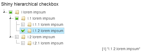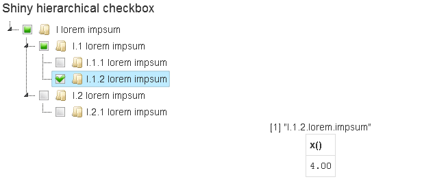 我只知道我必须使用reactive()。正如您可以看到的那样,这里,我已经学会了如何使用checkboxGroupInput,但是我不清楚这是否可以在shinyTree中完成。我在网上找不到这方面的文件。