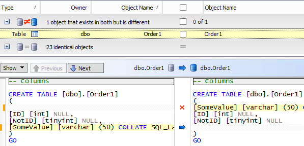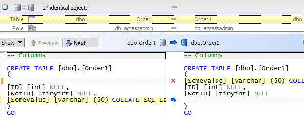 我使用RedGate SQLServer 11.6来比较两个SQLServer 2016数据库。