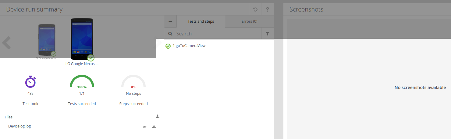 如果禁用Espresso,Testdroid爬虫会自动生成截图。通过使用Espresso-framework,它不会!见截图: