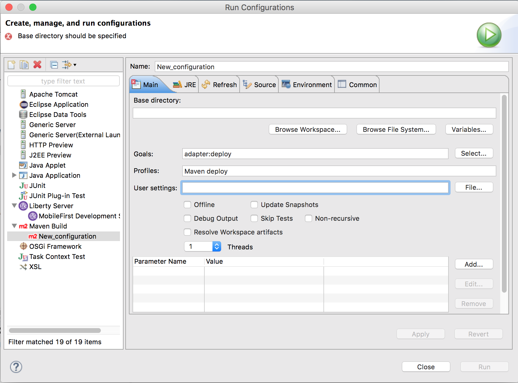 1)创建Maven运行配置时,需要指定基本目录。在这里选择您的maven项目。呃,"FileUploadAdapter“