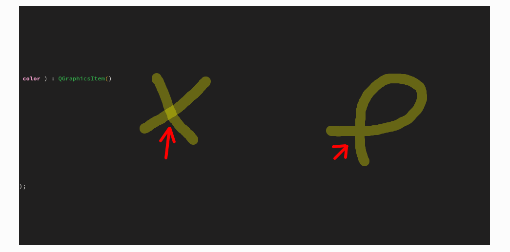 我用QGraphicsPathItems绘制半透明路径,但当两条路径重叠时,它们变得更加不透明,但我希望它们保持相同的透明度,不管有多少条路径重叠。