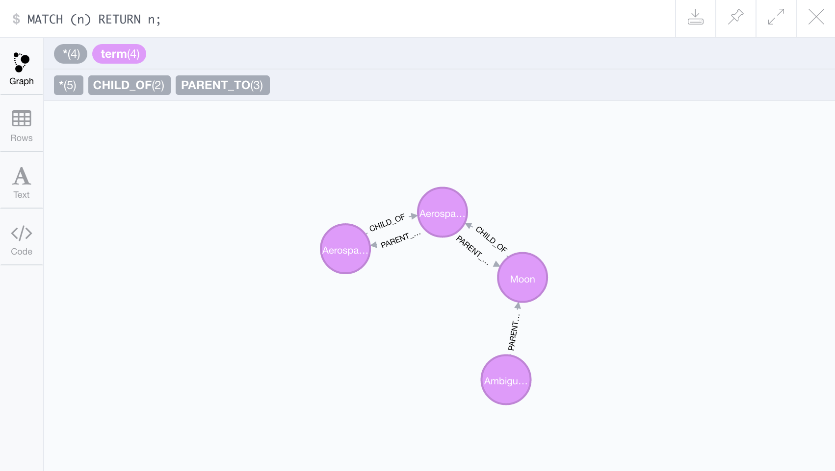 graph.push(c)在Neo4j浏览器中查询数据库给了我以下信息: