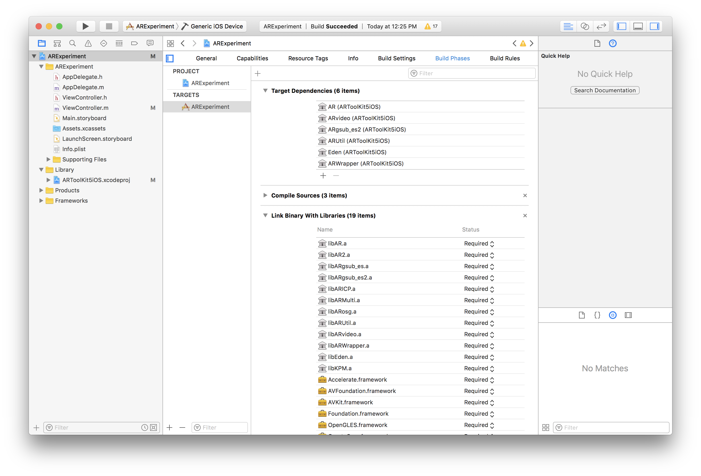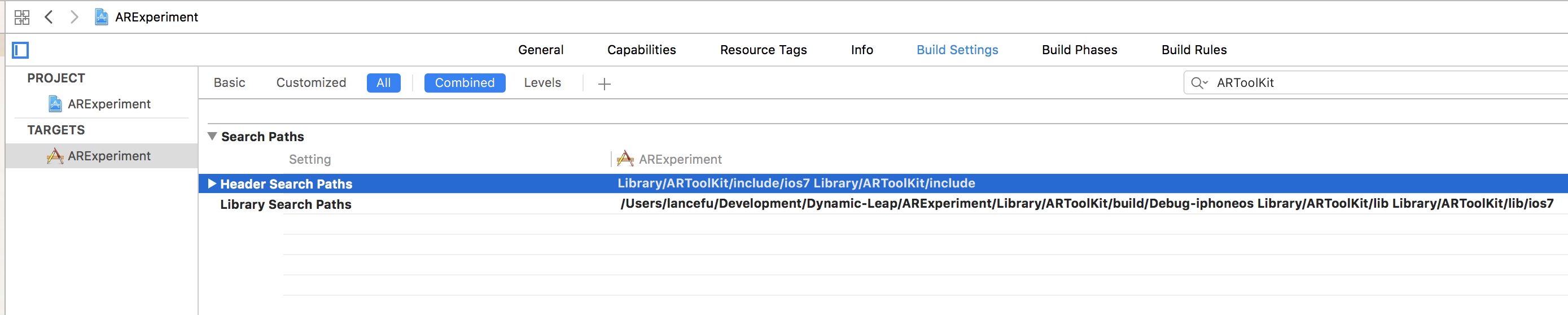 bash ARToolKit5iOS-bin.sh然后,我尝试导入lib并将目录包含到我的Xcode项目中。
