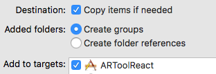 需要将lib、包含和ARAppCore添加到我们的项目中。当我们将文件夹添加到项目中时,请注意以下图像