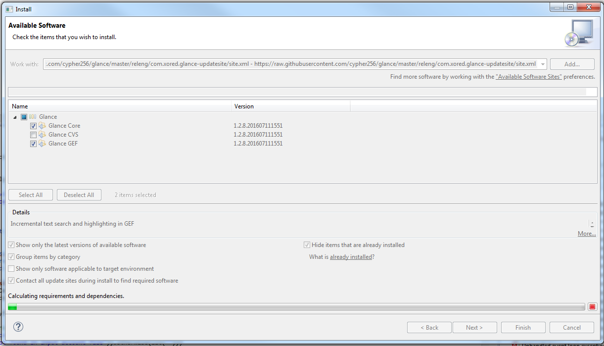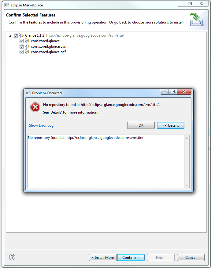 我无法从市场上安装Eclipse的Glance插件。这是呕吐错误。